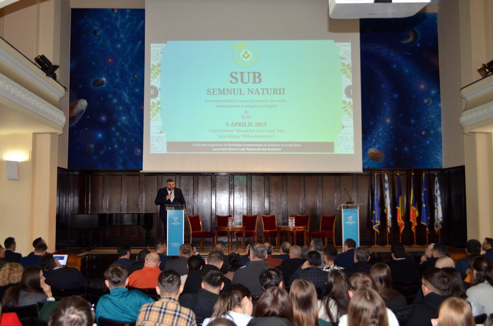 În data de 9 aprilie 2025, la Universitatea „Alexandru Ioan Cuza” din Iași, în Aula Magna „Mihai Eminescu”, a avut loc conferința „Semnul sub Naturii”, un eveniment dedicat explorării temelor de mediu, sustenabilitate și adaptare ecologică, organizat de Fundația Fraternitatea, la inițiativa și cu sprijinul Asociației Marea Lojă Națională din România .